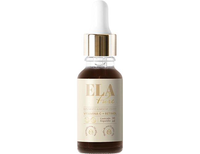 Ela Pure é um tratamento revolucionário em gotas que nutre sua pele, cabelos e unhas de dentro para fora, combatendo sinais de envelhecimento e promovendo hidratação e elasticidade.